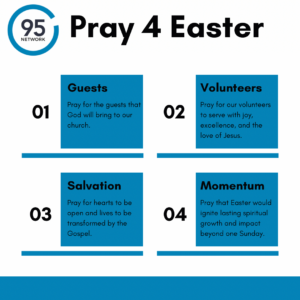 - Print and post a “Pray for Easter” prompt in a high-traffic area so staff and leaders pray intentionally as they pass by.
